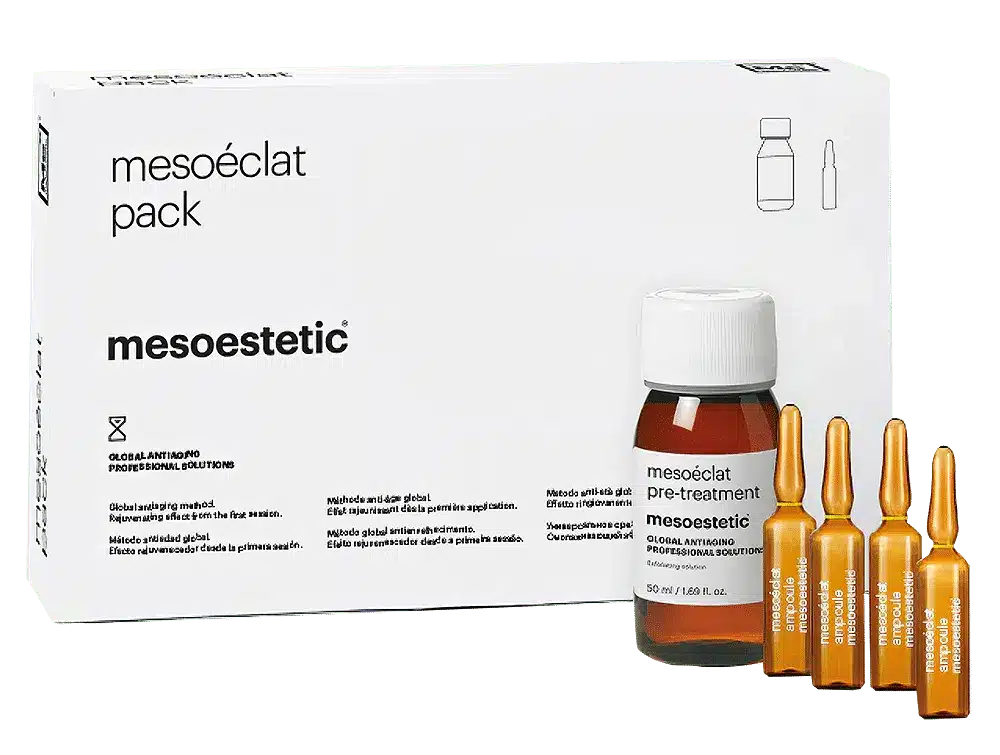 Mesoestetic Mesoeclat Pack is a professional treatment for immediate action skin rejuvenation. Produces cellular renewal, restoring vitality and elasticity to the skin.